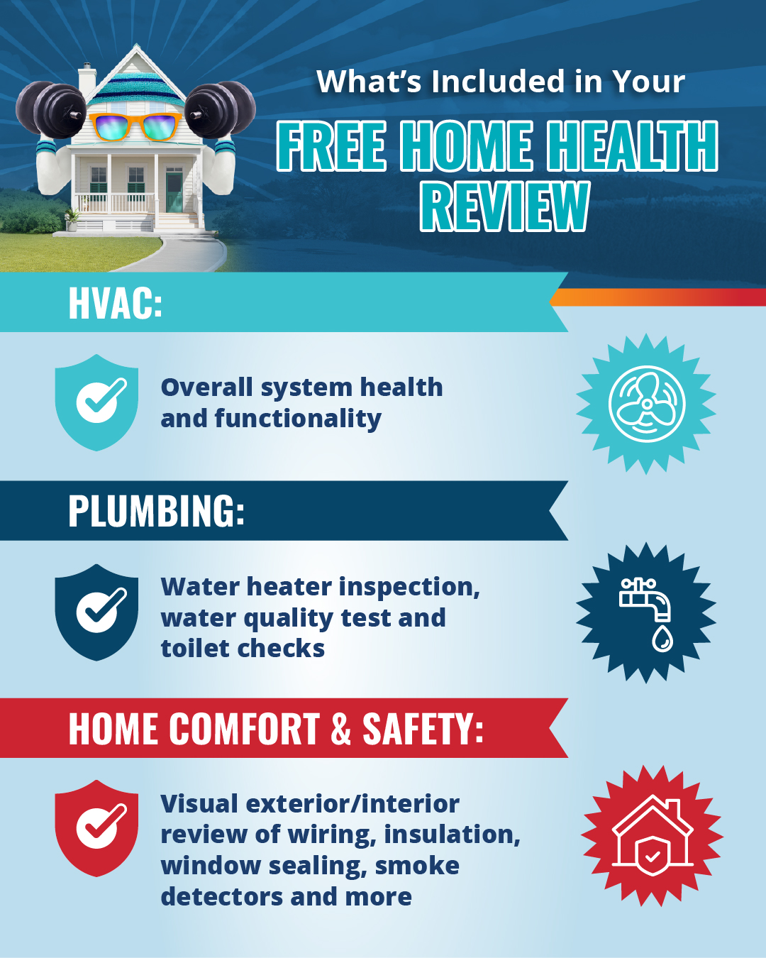 A: A multi-point checkup of your home’s key systems: HVAC, indoor air quality, plumbing, and overall efficiency.